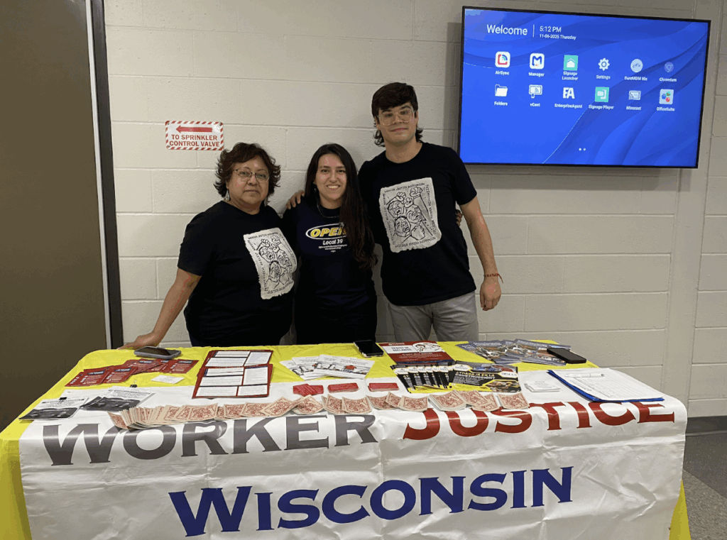 On November 6, members of the Madison teachers union (MTI) invited Worker Justice Wisconsin to set up an information booth during parent-teacher conferences. Our organizers spoke in Spanish with parents coming in and out of conferences about their rights and issues at work. We met fast food workers, restaurant workers,